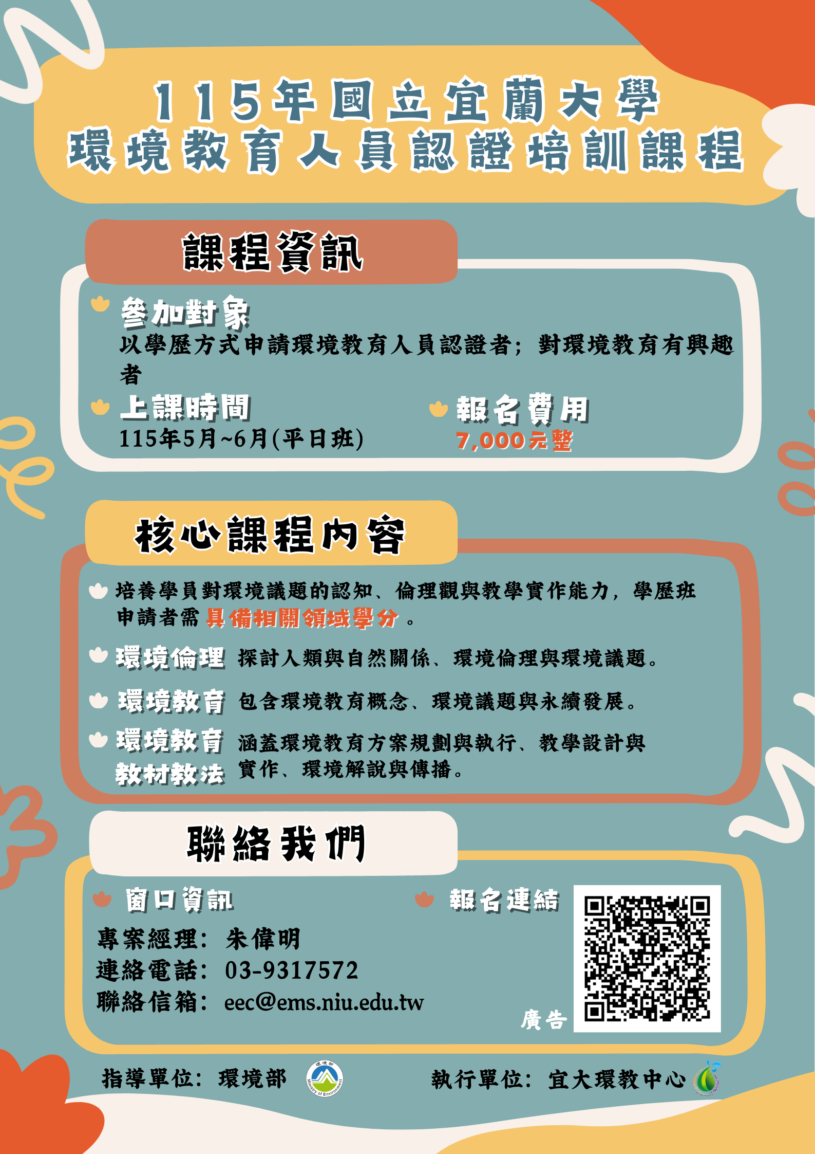 *歡迎對環境教育有興趣者或有需求者的夥伴們前來報名受訓哦!!