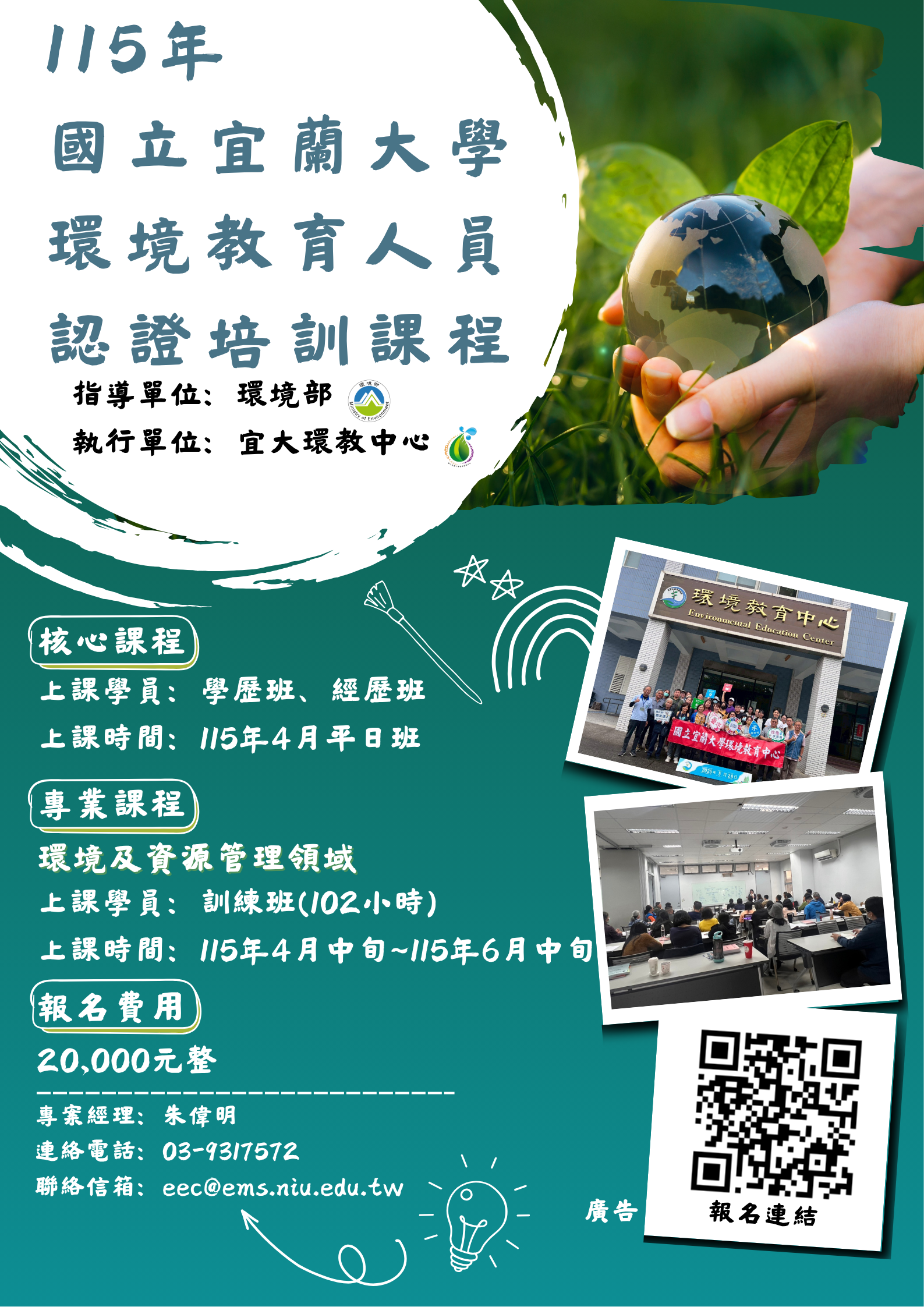 115年國立宜蘭大學 環境教育人員認證培訓課程